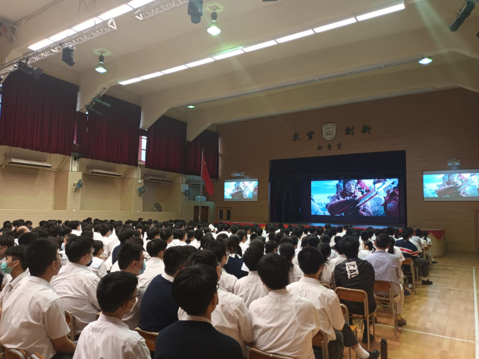 由教聯會與紫荊文化集團主辦、銀都機構和愛國教育支援中心承辦的《光影進校園》活動九月一日舉行啟動禮後,今天正式進入了校園。將軍澳香島中學約340位師生觀看了由四位香港新晉導演聯手執導的《一樣的天空》,影片講述回歸以來大時代下的小人物故事;培僑書院700位師生以及黃楚標中學500位師生則選映了由香港導演李仁港執導的《攀登者》,影片以1960年與1975年中國登山隊兩次登頂珠峰的事蹟為背景,講述了搶登珠峰背後的歷史意義。是次三場《光影進校園》選映的兩部影片,從多個角度提供了讓同學們了解國情的機會,透過影片增加對國民身份的認同,亦令學校連串慶祝國慶活動更豐富多彩。